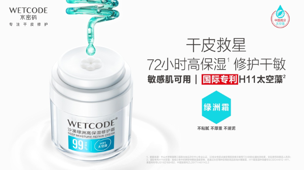 經(jīng)過長期技術(shù)突破和堅(jiān)持創(chuàng)新的理念,水密碼深入研究的H11太空藻,成功獲得中美發(fā)明雙專利,標(biāo)志著國貨科研實(shí)力的進(jìn)步。同時(shí),如何將先進(jìn)的科研力轉(zhuǎn)化成產(chǎn)品力、品牌力,也是品牌需要考慮的問題?;谶@一點(diǎn),水密碼積極將這一技術(shù)應(yīng)用到護(hù)膚領(lǐng)域,圍繞H11太空藻+其他強(qiáng)功效成分強(qiáng)強(qiáng)聯(lián)合,專門針對干皮人士,推出了沙漠綠洲系列產(chǎn)品。其中,“水密碼沙漠綠洲高保濕修護(hù)霜”擁有顯著滲透力和保濕力,可深入肌底,修護(hù)肌底,從根源上提升肌膚自身天然保濕因子生成。而沙棘籽油則具有類皮脂特性,可修護(hù)屏障,重塑肌膚高能鎖水力。