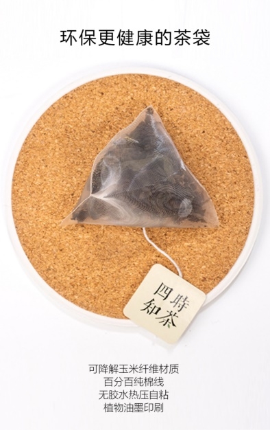 四時知茶出品的袋泡茶包,采用了天然環(huán)保的可降解玉米纖維材質(zhì),無膠熱壓技術(shù),所有的工藝,都不會對人體造成任何的傷害,對環(huán)境也不會造成任何污染,為保護我們的地球,盡綿薄之力。