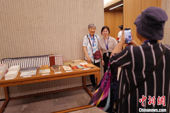 捐贈(zèng)版本的藏家在藏品前拍照留念。張煜歡攝