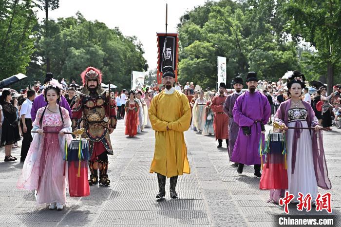 “貞觀二十載,大唐盛世,圣人巡游,重歸晉陽城……”20日,山西太原晉祠公園龍興晉陽雕塑群像前,隨著“宣禮官”一聲令下,數(shù)十名演員身著古裝,還原唐太宗李世民率群臣重游晉祠的故事,吸引眾多海內(nèi)外游客圍觀。