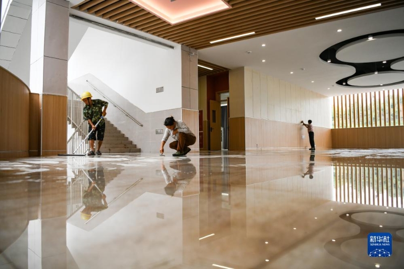 8月20日,在四川省宜賓市第三中學(xué)三江校區(qū)(高中部),工人在進(jìn)行保潔工作。