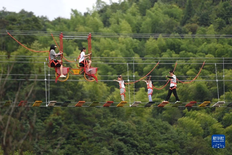 8月20日,游客在余姚市四明山鎮(zhèn)北溪村體驗高空項目。
