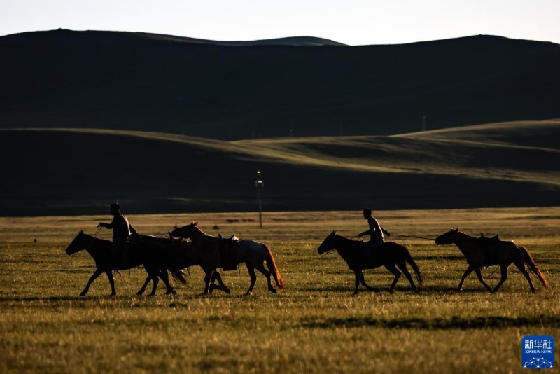 8月18日,在蒙古國泰吉山谷,牧人將自己的馬匹收攏。