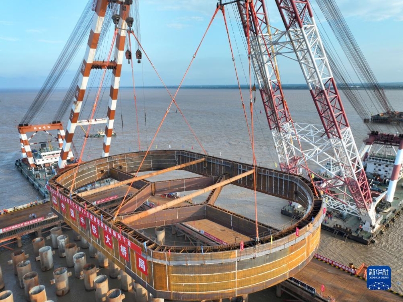 8月20日,由中鐵大橋局施工的崇啟公鐵長江大橋4號(hào)主墩首節(jié)鋼圍堰安裝到位,標(biāo)志著崇啟公鐵長江大橋4號(hào)主墩正式轉(zhuǎn)入大體積承臺(tái)施工階段。