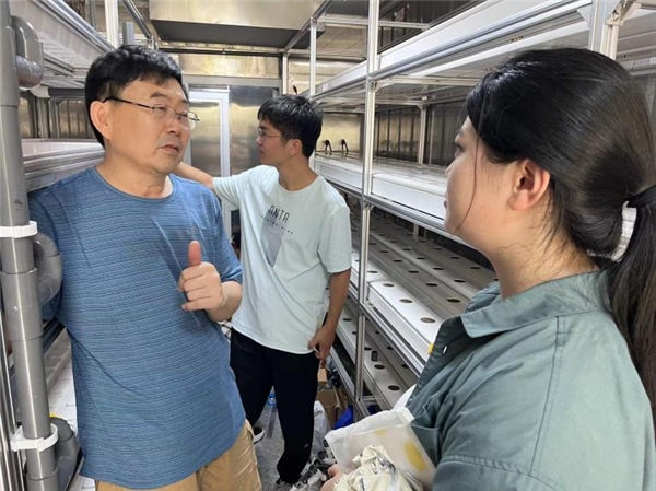 暑期實(shí)踐第一站,實(shí)踐團(tuán)成員于7月21日來(lái)到了江蘇常熟國(guó)家農(nóng)業(yè)科技園區(qū)。實(shí)踐團(tuán)成員走進(jìn)溫室大棚,頂著近40度的高溫,觀看了淺液流栽培模式下植物底層海綿墊的清洗過(guò)程;走進(jìn)育苗室,實(shí)踐團(tuán)成員在朱博士的講解下了解到了現(xiàn)代科技在植物幼苗培育過(guò)程中的作用。植物幼苗培育使用營(yíng)養(yǎng)土和營(yíng)養(yǎng)液兩種模式,頂部設(shè)有色彩斑斕的燈帶,可以滿足植物幼苗生產(chǎn)的不同光源需求。此外,實(shí)踐團(tuán)成員們還了解到深液流栽培、氣霧化栽培和潮汐式栽培等多項(xiàng)農(nóng)業(yè)種植新技術(shù)。
