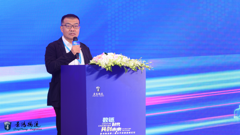 論壇開篇,景鴻物流董事長(zhǎng)王毅針對(duì)當(dāng)前物流行業(yè)所面臨的多項(xiàng)挑戰(zhàn)與考驗(yàn),以“數(shù)鏈時(shí)代 共創(chuàng)未來”為主題發(fā)表演講。王董表示,當(dāng)前國(guó)際物流和供應(yīng)鏈行業(yè)正迎來新冠疫情后的恢復(fù)增長(zhǎng),同時(shí)面臨雙循環(huán)發(fā)展新格局、信息技術(shù)深度應(yīng)用、生態(tài)環(huán)保緊約束等多重挑戰(zhàn)和考驗(yàn)。景鴻物流在數(shù)字賦能加持下,致力于加快智慧物流轉(zhuǎn)型,推進(jìn)低碳環(huán)保高質(zhì)量可持續(xù)發(fā)展。