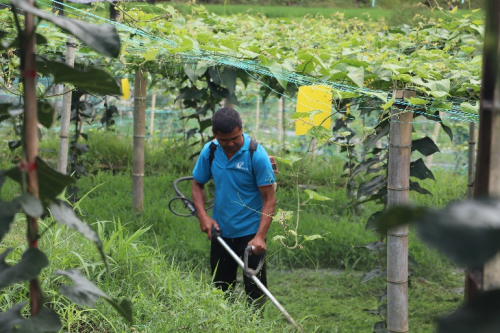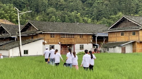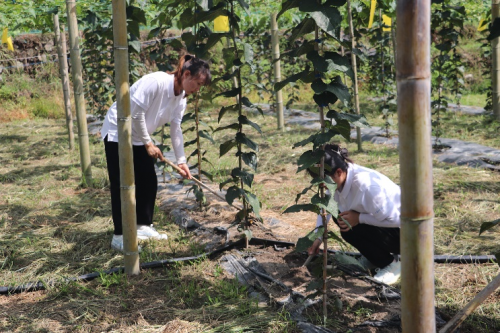 實(shí)踐隊(duì)伍聚焦“鄉(xiāng)村振興”,深入鄉(xiāng)村開(kāi)展實(shí)地調(diào)研,對(duì)往洞鎮(zhèn)的經(jīng)濟(jì)發(fā)展?fàn)顩r及特色產(chǎn)業(yè)的發(fā)展有了深度了解,并就此次調(diào)研中發(fā)現(xiàn)的問(wèn)題進(jìn)行分析,提出自己的建議,助力鄉(xiāng)村振興注入青春活力。7月23日,實(shí)踐隊(duì)伍走近田間地頭,參觀調(diào)研“稻魚(yú)鴨”基地和百香果、羅漢果基地。為了體驗(yàn)果農(nóng)種植的不易,實(shí)踐成員用勞動(dòng)助農(nóng)的方式,幫助當(dāng)?shù)剞r(nóng)民松土、施肥,用勞動(dòng)和汗水為鄉(xiāng)村振興貢獻(xiàn)自己的青春力量,讓青春之花在田間地頭綻放!