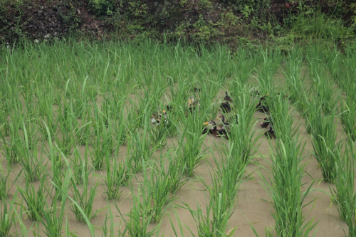 楊平合村支書(shū)表示當(dāng)?shù)夭捎昧说爵~(yú)鴨共作模式,實(shí)現(xiàn)了稻魚(yú)鴨共生,“錢(qián)”景可期。村支書(shū)告訴實(shí)踐隊(duì)員,每年四五月份,當(dāng)?shù)剞r(nóng)戶(hù)會(huì)把小鴨子放養(yǎng)到水稻田里,讓它們吃害蟲(chóng)、生產(chǎn)糞肥,魚(yú)兒在水里自由自在地游蕩,“一水三用、一田多收”的“稻魚(yú)鴨”模式給當(dāng)?shù)剞r(nóng)戶(hù)帶來(lái)豐厚饋贈(zèng)。稻魚(yú)鴨共生、魚(yú)米鴨同收,既能為百姓提供重要的生存所需,又能防止環(huán)境污染,有效保護(hù)生物多樣性。是一條傳統(tǒng)民族文化保護(hù)驅(qū)動(dòng)農(nóng)作物資源多樣性的新型農(nóng)家生存發(fā)展“稻”路。