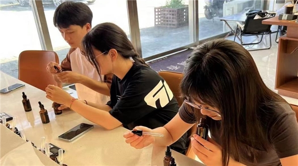 理論是實(shí)踐的眼睛,實(shí)踐是思想的真理。本著完善大學(xué)生創(chuàng)新創(chuàng)業(yè)實(shí)踐項(xiàng)目,充實(shí)暑假生活的目的,隊(duì)員們分批進(jìn)行了不同的實(shí)踐活動(dòng)。據(jù)悉,為了解香水香薰產(chǎn)品的生產(chǎn)工藝,調(diào)查目標(biāo)產(chǎn)品的市場(chǎng)供需特征,探討生態(tài)農(nóng)產(chǎn)品開發(fā)的可行性,該隊(duì)成員前往了蘇州觀前街籬想調(diào)香實(shí)驗(yàn)室進(jìn)行楊梅味香水香薰的調(diào)配,根據(jù)前調(diào),中調(diào)和后調(diào)的概念,準(zhǔn)確加入不同的香料,并選擇合適的濃度,以達(dá)到預(yù)期的香氣效果。他們利用混合器將香料充分融合,確保每種香精都能充分展現(xiàn)其獨(dú)特的特點(diǎn)。整個(gè)過程需要仔細(xì)操作和專業(yè)知識(shí),才能得到高質(zhì)量的香水產(chǎn)品。