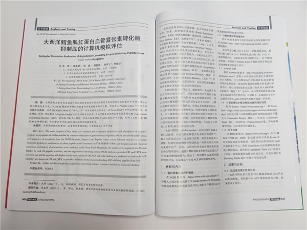 此次俏美韻與北京工商大學(xué)的深度產(chǎn)學(xué)研融合是通過(guò)計(jì)算機(jī)模擬胃腸消化的方法推定大西洋鱈魚(yú)的肌紅蛋白中生物活性肽出現(xiàn)的概率及其豐度。從 NCBI 數(shù)據(jù)庫(kù)中得到肌紅蛋白的氨基酸序列并下載,將其導(dǎo)入 Peptide Cutter 中選用不同的酶模擬酶解,并在BIOPEP-UWM 的“酶促工具”中對(duì)其短肽進(jìn)行分析,在 Toxin Pred 中分析其理化性質(zhì)、毒性特征。同時(shí),將結(jié)果導(dǎo)入Peptide Ranker中對(duì)肽活性進(jìn)行排序,并從中篩選出兩種血管緊張素轉(zhuǎn)化酶酶(Angiotensin Converting Enzyme,ACE)抑制肽 CW 和 LFPK,將活性較高的肽與 ACE 進(jìn)行分子對(duì)接,分析了 CW 和 LFPK的 ACE 抑制機(jī)制,為從女性大健康產(chǎn)品中尋找 ACE 抑制肽的研究提供理論參考。