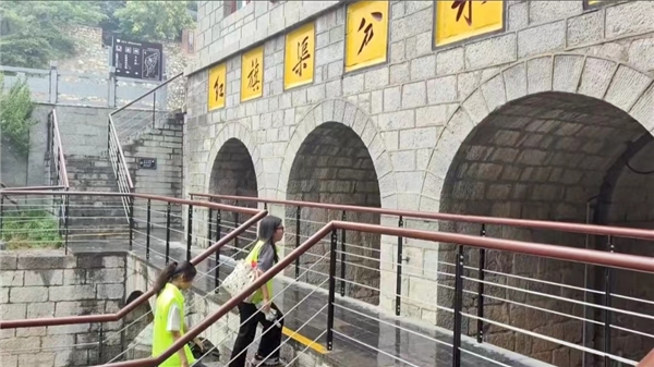 從場館出來后,成員們繼續(xù)深入,來到紅旗渠分水閘??吹侥切蹅サ牡虊?注視著那一座座水閘,成員們心中充滿了敬畏。由林縣人民一錘一斧鑿出來的分水閘,在紅旗渠干支流交匯處通過三道閘門將渠水分成多個部分,使山下的每家每戶有水可用。多年來,正是通過紅旗渠分水閘不斷開閘放水,林州人民逐漸擺脫了苦難的缺水生活。實踐團成員李倩表示:“站在分水閘前,眼前仿佛出現(xiàn)了林州人民奮戰(zhàn)的情形,耳畔激蕩著催人奮進的聲音?!?/p>