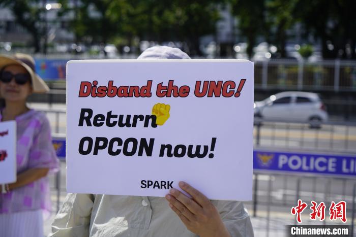 21日上午,韓國民間團體“和平統(tǒng)一開創(chuàng)者”在韓國總統(tǒng)府前的空地集會。有市民手舉“中斷韓美軍事演習”“立即收回戰(zhàn)時作戰(zhàn)指揮權”“反對北約成員國軍事介入朝鮮半島”等標語,呼吁韓美兩國停止軍演,要求廢除美國對韓國提供的“延伸威懾”。