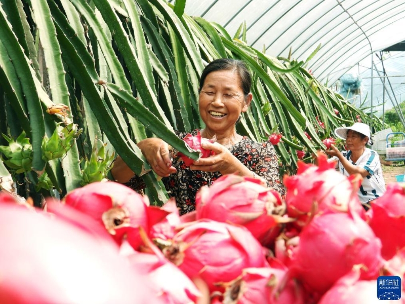 8月19日,四川省達(dá)州市大竹縣東柳街道黃家壩社區(qū),一家農(nóng)業(yè)專業(yè)合作社的果農(nóng)忙著采收火龍果。