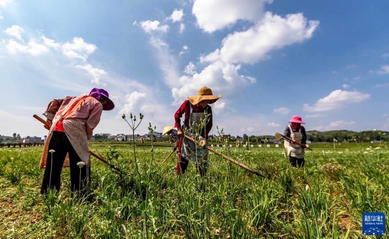 村民在貴州省黔西市林泉鎮(zhèn)海子村韭菜種植示范基地鋤草(8月20日攝)。