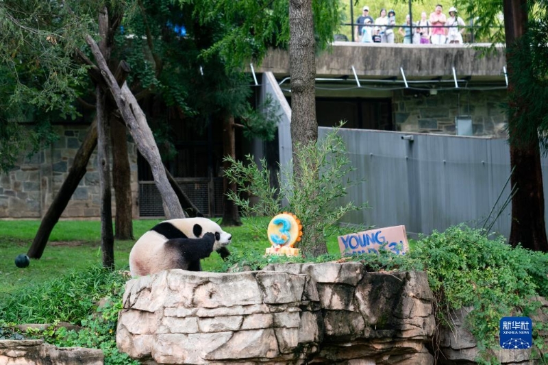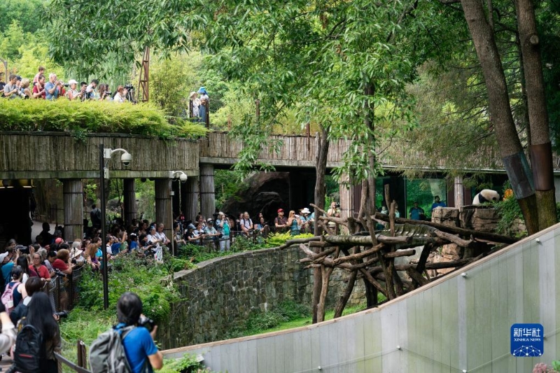 8月21日,游客在美國首都華盛頓史密森學(xué)會國家動物園觀看大熊貓幼崽“小奇跡”過生日。