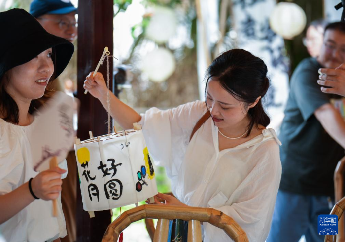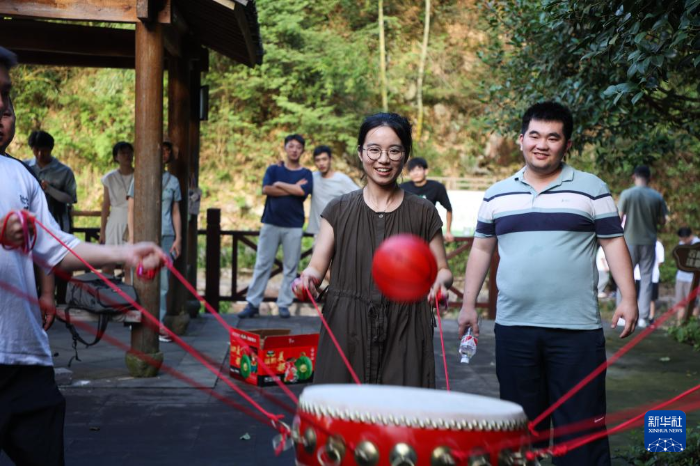 8月20日,青年在東白湖鎮(zhèn)“七夕”聯(lián)誼活動的“乞巧雅集”游玩。新華社記者 徐昱 攝