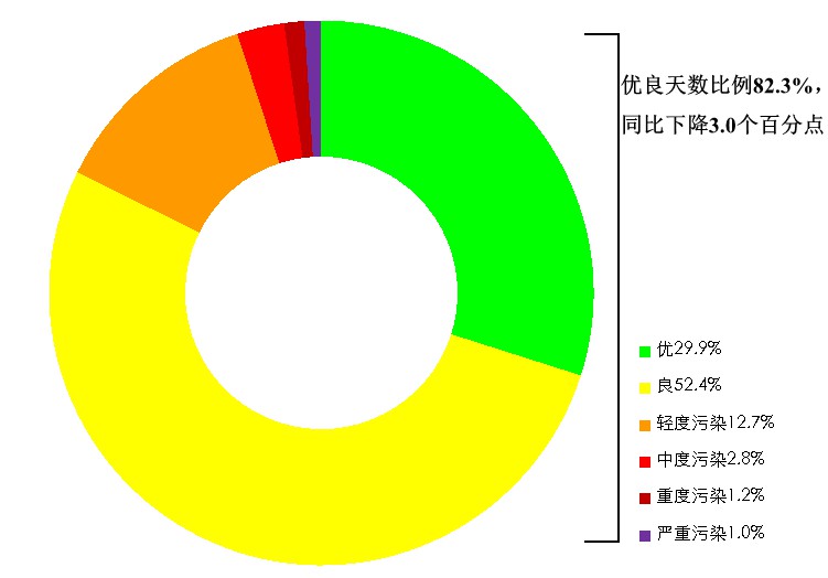 1—7月,全國339個地級及以上城市平均空氣質(zhì)量優(yōu)良天數(shù)比例為82.3%,同比下降3.0個百分點(diǎn);平均重度及以上污染天數(shù)比例為2.2%,同比上升1.1個百分點(diǎn);PM2.5平均濃度為31微克/立方米,同比上升3.3%;PM10平均濃度為56微克/立方米,同比上升9.8%;O3平均濃度為149微克/立方米,同比上升2.1%;SO2平均濃度為9微克/立方米,同比持平;NO2平均濃度為21微克/立方米,同比上升5.0%;CO平均濃度為1.0毫克/立方米,同比下降9.1%。