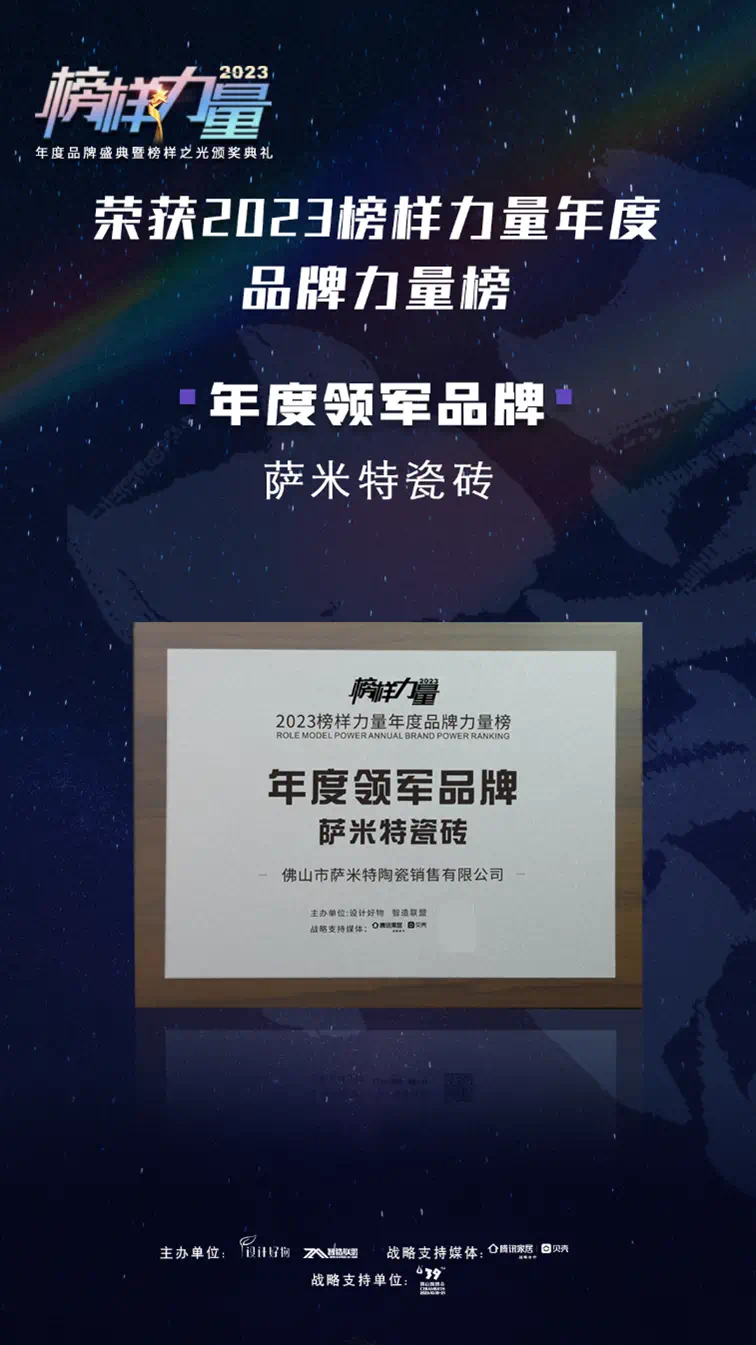 時代之光 榜樣力量 | 薩米特瓷磚榮登2023“年度領(lǐng)軍品牌”