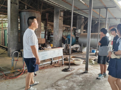 圖為實(shí)踐隊(duì)參觀村委副書(shū)記茶葉加工廠 通訊員 郝壘壘 攝