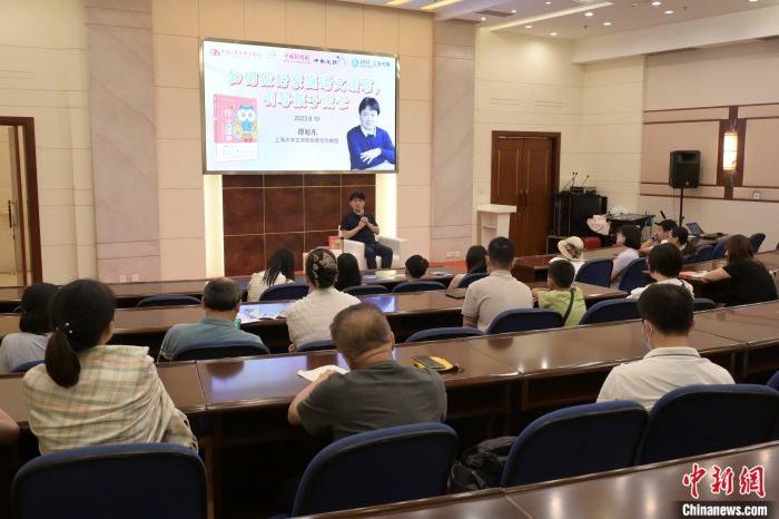中新網(wǎng)8月22日電 8月19日晚,魯迅文學(xué)獎(jiǎng)得主、上海大學(xué)文學(xué)院教授、博士生導(dǎo)師譚旭東攜新作《作文課:讓創(chuàng)意改變作文》,走進(jìn)上海書展,暢談家庭語(yǔ)文教育。譚旭東以自己多年指導(dǎo)中小學(xué)語(yǔ)文教育的經(jīng)歷與大家分享:家庭語(yǔ)文讀寫的培養(yǎng),對(duì)孩子的成長(zhǎng)和語(yǔ)文的進(jìn)步,都非常關(guān)鍵。
