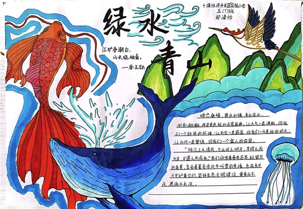 圖為 小同學(xué)繪制的“綠水青山”主題手抄報(bào) 通訊員 張子靈 供