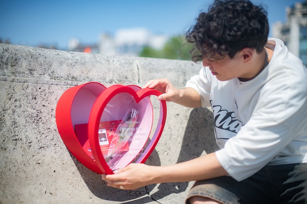 這個應(yīng)急玫瑰裝置無論是放在哪個街頭,都是非常亮眼的存在。代表愛情元素的心形紅色外觀遠(yuǎn)遠(yuǎn)望去就能被抓住眼球,讓不少路人紛紛前往一探究竟。