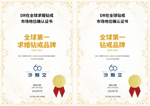 從2020到2022年,DR鉆戒已經(jīng)連續(xù)三年位居全球求婚鉆戒銷量第一。弗若斯特沙利文經(jīng)過全球數(shù)據(jù)調(diào)研,數(shù)據(jù)顯示,DR是“全球第一求婚鉆戒品牌”和“全球第一鉆戒品牌”。業(yè)內(nèi)人士分析稱,DR之所以能夠成為全球第一的求婚鉆戒品牌,主要是憑借其獨(dú)特品牌理念、產(chǎn)品硬實(shí)力、高坪效旗艦店以及3000萬的真愛粉絲。