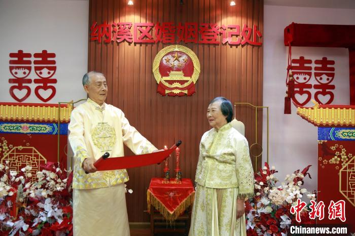 “很榮幸在如此特殊的日子里,在眾人的見證和祝福下,由爺爺奶奶為我們頒證,這將是我們一生中最難忘的事!聆聽了爺爺奶奶講述的愛情故事、傳承良好的好家風(fēng)以及分享的幸福家庭感悟,使我們受益匪淺,有了他們的錦囊,我們一定會把婚姻和家庭經(jīng)營得更好?!鳖I(lǐng)證的新人伍孝平和吳雪興奮地說道。