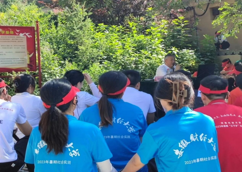 圖為實踐隊員在楊家?guī)X舊址聆聽席軍良老師《弘揚七大精神,增強“四個意識”》報告