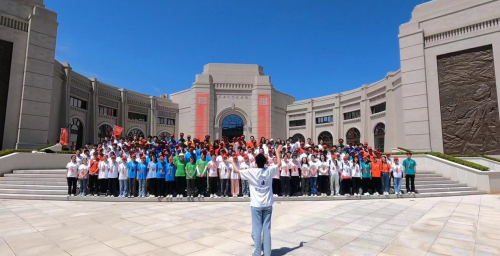 圖為所有實踐團隊在延安文藝紀念館前合唱《黃河大合唱》