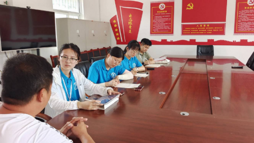 圖為實踐隊員采訪南溝村三委會監(jiān)委會主任李金亮