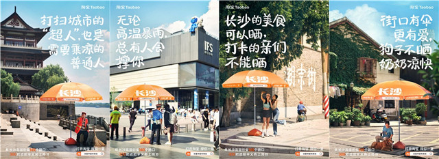 淘寶同步發(fā)布了一組人文情緒海報,在長沙的各個城市角落,一把醒目的橙色遮陽傘佇立其間,也成為重要的傳播素材。