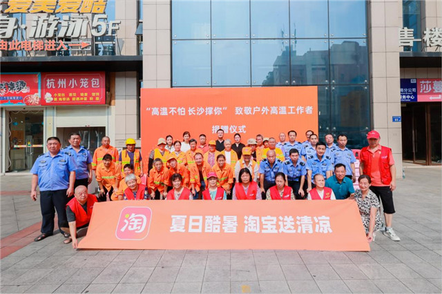 這一次在送出遮陽傘的同時,8月8日當天,淘寶還聯(lián)合湖南省神農(nóng)基金會給長沙市的高溫工作者送去了1600箱礦泉水,并在芙蓉區(qū)朝陽街道辦事處舉行了捐贈物資交接儀式,為堅守崗位的高溫工作者工作者送去清涼和關愛。