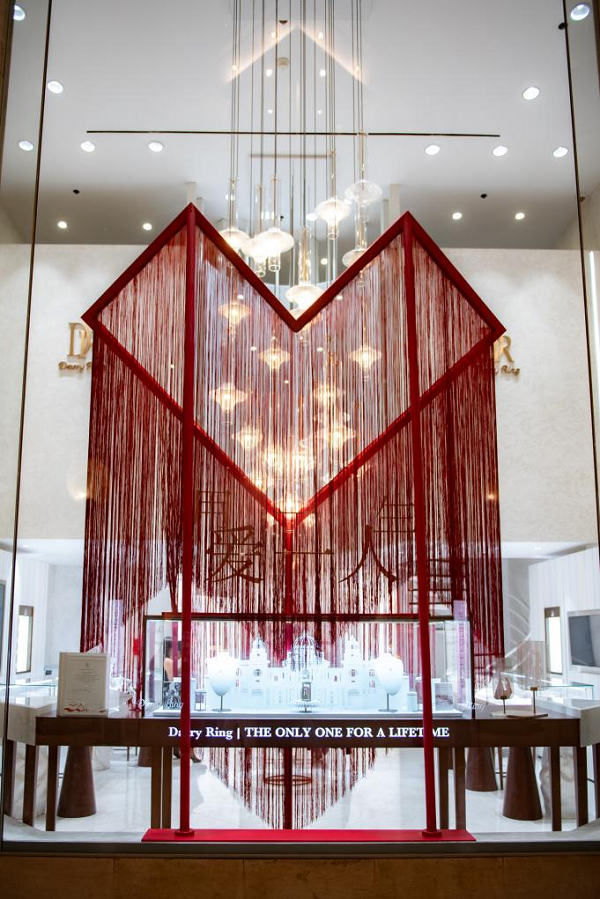 七夕情人節(jié),除了應(yīng)急玫瑰禮盒的活動以外,DR更是在巴黎旗艦店設(shè)置了與中國風(fēng)一脈相承的紅繩櫥窗裝置,為法國人民獻(xiàn)上了美好的七夕祝福,并向他們傳遞著“用一生愛一人”的真愛理念影響更多的人成為真愛的追隨者,讓更多的人相信愛,勇敢愛,堅定愛!