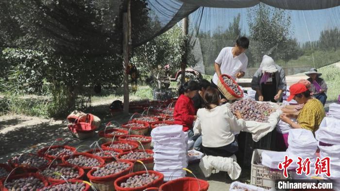 中新網(wǎng)烏魯木齊8月22日電(戚亞平 張濤)秋高氣爽,瓜果飄香,新疆南部各地各種時(shí)令水果紛紛進(jìn)入采摘旺季,新疆生產(chǎn)建設(shè)兵團(tuán)第一師阿拉爾市13團(tuán)幸福鎮(zhèn)22連種植的西梅也迎來采摘季。