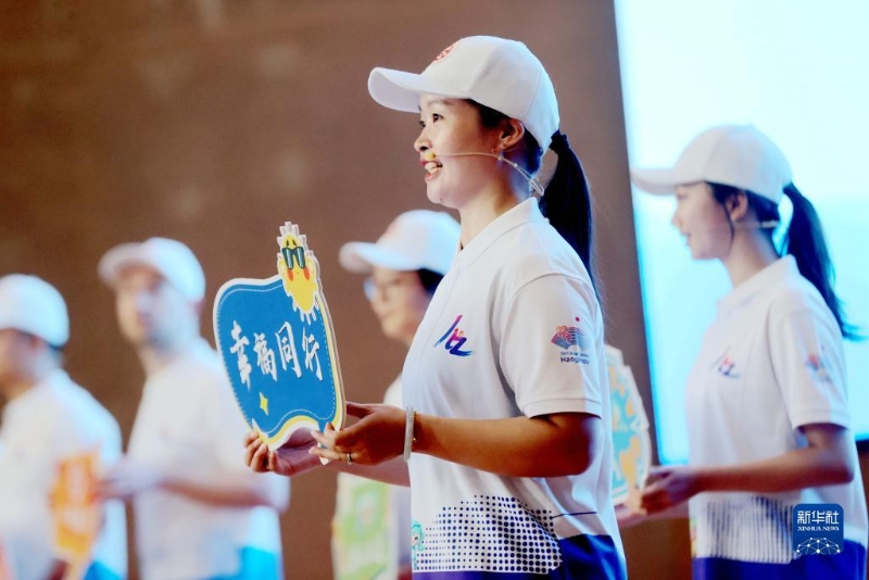8月23日,在浙江工業(yè)大學莫干山校區(qū),城市側(cè)志愿者在展示志愿服務形象禮儀。