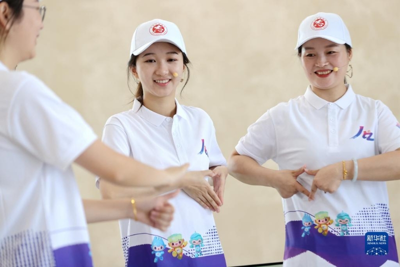 8月23日,在浙江工業(yè)大學莫干山校區(qū),城市側(cè)志愿者在學習手語。