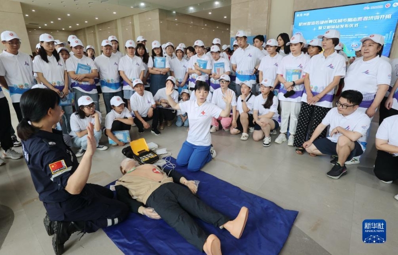 8月23日,在浙江工業(yè)大學莫干山校區(qū),培訓講師為城市側(cè)志愿者指導心肺復蘇技能。