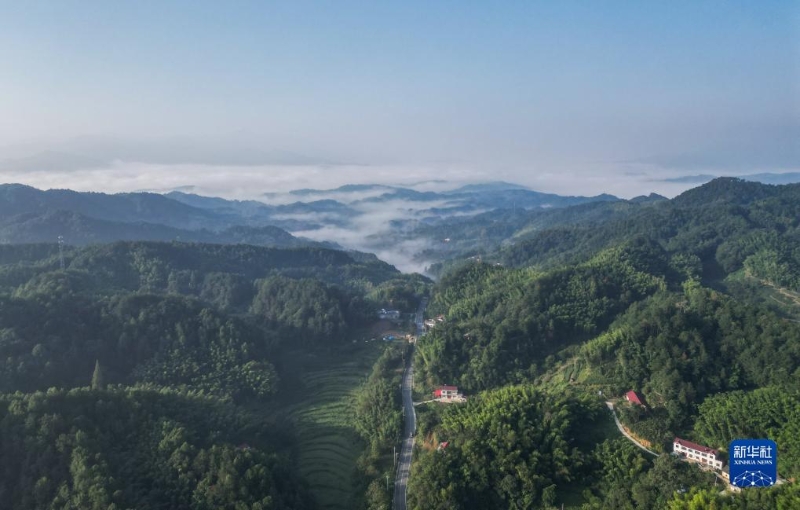 這是8月23日航拍的安徽省六安市霍山縣漫水河鎮(zhèn)附近的云海。
