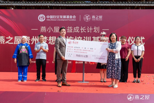 實(shí)施鄉(xiāng)村文化振興戰(zhàn)略,關(guān)鍵就是要讓鄉(xiāng)村文化建設(shè)真正融入人民的日常生活之中,使之成為日用而自覺、成風(fēng)而化俗的行為方式。為了進(jìn)一步傳承保護(hù)非物質(zhì)文化遺產(chǎn),為苗繡技藝傳承人打造良好創(chuàng)作環(huán)境,提供系統(tǒng)化、精細(xì)化的技能培訓(xùn),促進(jìn)當(dāng)?shù)嘏跃蜆I(yè),實(shí)現(xiàn)其更多的社會價值。恰逢“燕小屋公益成長計劃”兩周年,燕之屋再赴貴州,正式啟動燕之屋貴州夢想工坊培訓(xùn)基地,延續(xù)非遺傳承公益行動,兌現(xiàn)公益可持續(xù)發(fā)展承諾,履行企業(yè)社會責(zé)任。燕之屋品牌總監(jiān)沈曉聰在致辭中表示:“我們在今天成立的培訓(xùn)基地,是一個美好延續(xù)。我們希望能夠打造‘公益扶持+女性發(fā)展+文化傳承’的一體化發(fā)展樣本,今天培訓(xùn)基地的成立,也是對這個目標(biāo)的進(jìn)一步推進(jìn),我希望有更多的‘鄉(xiāng)村繡娘’能通過這個項目獲得支持,實(shí)現(xiàn)自己的夢想與價值。”活動現(xiàn)場,燕之屋還通過“燕小屋公益成長計劃”向中國婦女發(fā)展基金會捐贈30萬,定向支持貴州的婦女發(fā)展和非遺傳承。