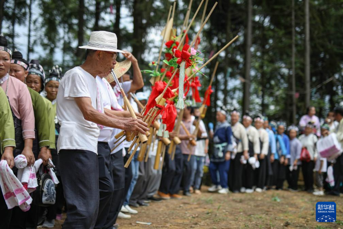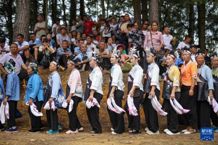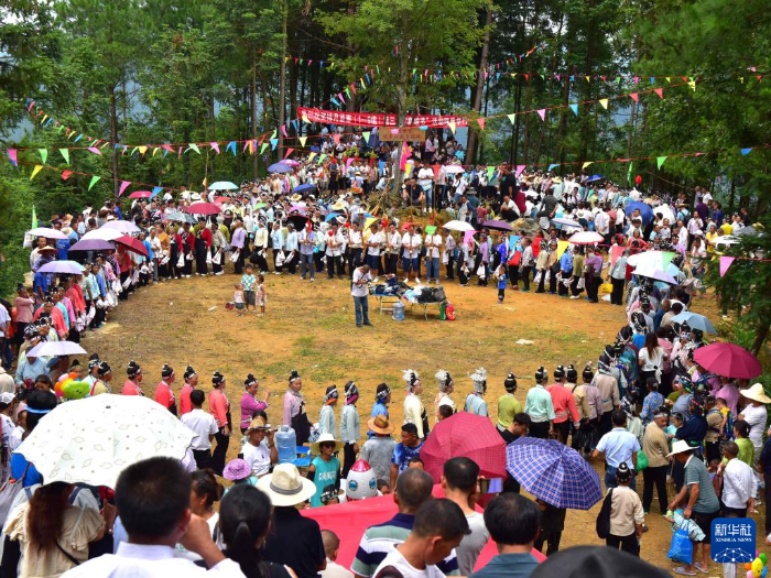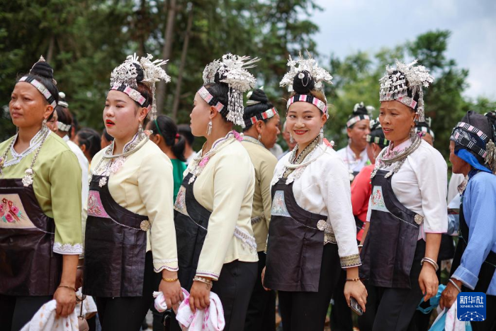 當(dāng)日,貴州省黔南布依族苗族自治州三都水族自治縣普安鎮(zhèn)高硐村排月苗寨舉辦一年一度的傳統(tǒng)“爬坡節(jié)”,來(lái)自周邊村寨的苗族村民身著節(jié)日盛裝,跳蘆笙、唱山歌,以舞會(huì)友,以歌傳情,歡度佳節(jié)。