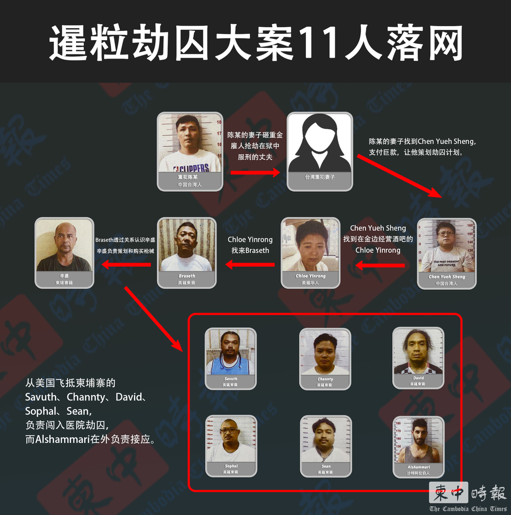 中新網(wǎng)8月24日電 據(jù)柬埔寨《柬中時(shí)報(bào)》報(bào)道,8月17日5名蒙面武裝歹徒在柬埔寨暹粒市一家牙科醫(yī)院襲擊押送囚犯的獄警,劫走中國臺灣籍囚犯陳某。柬警方23日通報(bào),截至23日上午,共有11名嫌犯(10男1女)已落網(wǎng),包括被劫走的陳某。柬警方表示,陳某的妻子不惜砸重金,雇用美國黑幫搶劫在獄中服刑的丈夫。