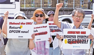 8月21日,韓國民眾舉行集會,敦促立即停止當天啟動的韓美“乙支自由之盾”聯(lián)合軍演。