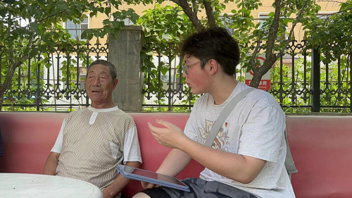 圖為陳新悅同學(xué)同老年大學(xué)的老人訪談。劉鎧瑞 供圖