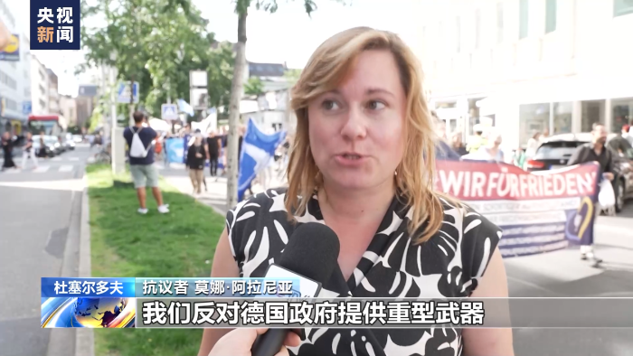 抗議者 莫娜·阿拉尼亞:我們反對(duì)德國(guó)政府提供重型武器,因?yàn)槲淦鞑荒軇?chuàng)造和平,它們只會(huì)延長(zhǎng)和增加烏克蘭民眾的痛苦,我們希望德國(guó)采取外交行動(dòng),停止輸送重型武器。