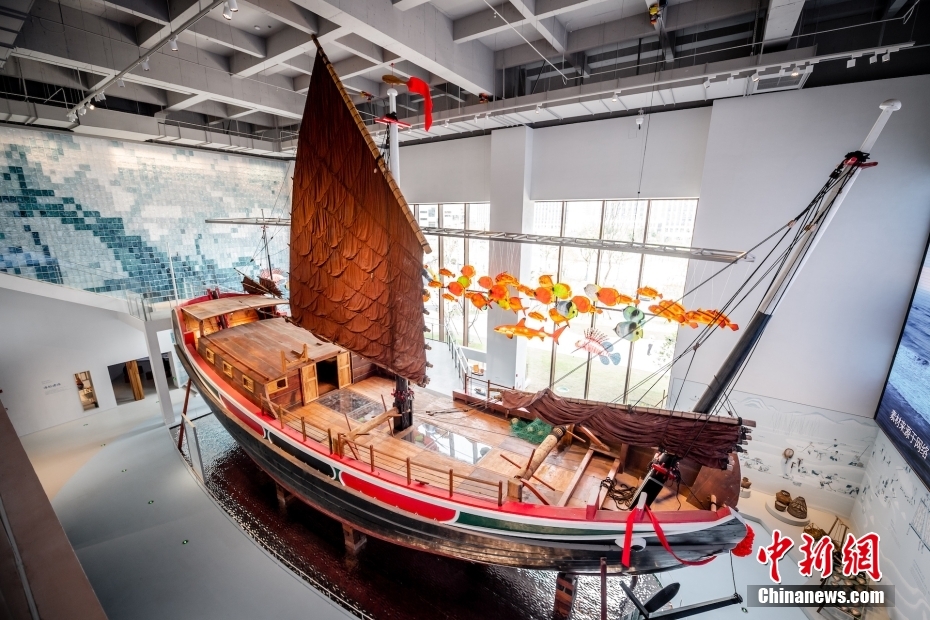 8月29日,之江文化中心在浙江杭州啟用。該中心集結浙江圖書館之江館、浙江省博物館之江館、浙江省非物質文化遺產(chǎn)館、浙江文學館和之江文化中心公共服務中心,是目前中國體量最大的省級公共文化集群。圖為浙江省非物質文化遺產(chǎn)館展出的大船。施展 攝