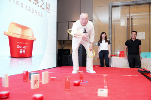 觥籌交錯間,歌舞助雅興。臺下貴賓開懷暢飲,品美味佳肴,臺上小提琴、舞蹈輪番上演,掀起視聽盛宴。其中,燕之屋工作人員特別準備感恩舞蹈,以滿滿誠意答謝在座貴賓。席間,燕之屋還精心安排套圈游戲,賓客們熱情參與,盡情享受游戲的樂趣。