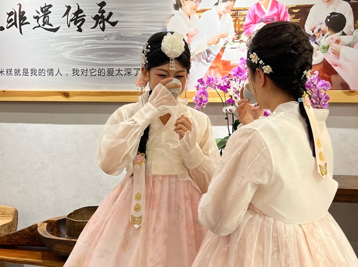 走進(jìn)中國(guó)朝鮮族米糕體驗(yàn)館,映入眼簾的是色澤典雅的花糕、工藝復(fù)雜的蒸糕和老少皆宜的打糕,無不體現(xiàn)了朝鮮族對(duì)飲食的極致追求?!案恻c(diǎn)的技藝是直系的代代相傳,但也會(huì)根據(jù)現(xiàn)代人口味進(jìn)行改良,比如在厚餅餡中加入夏威夷果仁和腰果,提高餡料的香甜口感和營(yíng)養(yǎng)價(jià)值?!背r族宮廷花米糕非遺傳承人李香丹介紹。