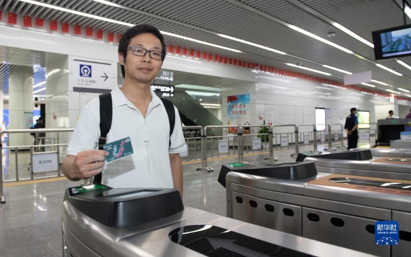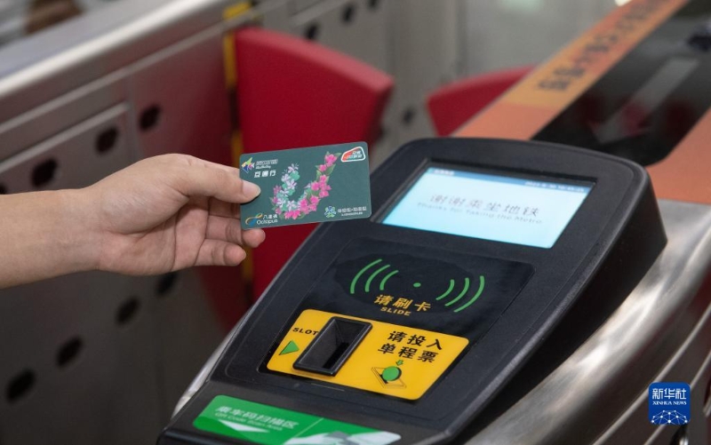 8月30日,在深圳福田站地鐵閘機出口,用戶持深港互通行卡準備刷卡。新華社記者 毛思倩 攝