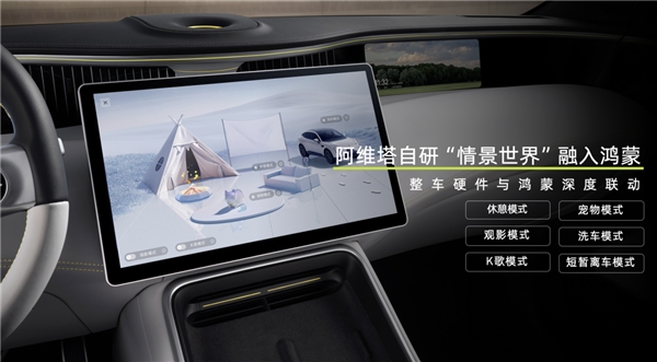 即將在阿維塔11上線的鴻蒙座艙,是阿維塔與華為共創(chuàng)的全新成果,也是阿維塔在本次發(fā)布會上分享的重點。據(jù)悉,阿維塔11鴻蒙座艙擁有零層級設計桌面,讓消費者的操作更輕松,甚至于讓“車機跟手機一樣方便”。另外,阿維塔創(chuàng)造性地將自研的“情景世界”融入鴻蒙車機系統(tǒng),使得整車硬件與鴻蒙系統(tǒng)深度聯(lián)動,面向用戶提供休憩模式、觀影模式、K歌模式、寵物模式、洗車模式、短暫離車模式共六種情景模式。
